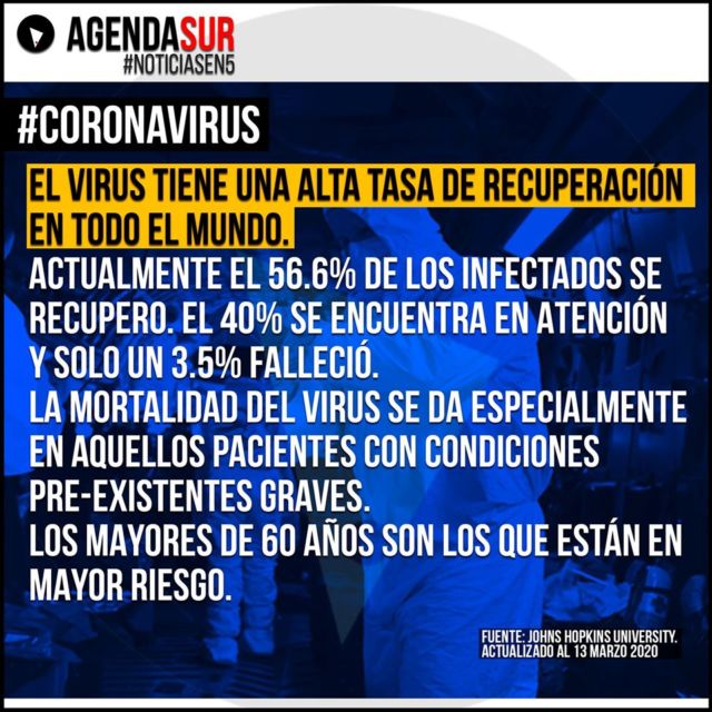 El virus tiene una alta tasa de recuperación en todo el mundo.