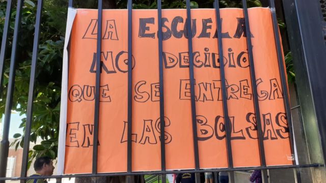 El secretario de Condiciones y Medioambiente de Trabajo de la Unión de Trabajadores de la Educación (UTE), Pablo Francisco, denuncia que los bolsones que ahora se entregan cada 15 días, resultan insuficientes, no solamente para la matrícula escolar en general, sino para las y los becados en particular. Además, desde UTE aseguran que esos alimentos no cumplen con los parámetros nutritivos básicos para niñas, niños y adolescentes. Además, se generan largas colas de las familias en las escuelas para retirar los bolsones.