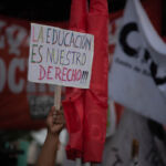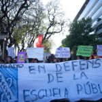 “La educación no está sola” llevaba escrita la bandera que encabezaba la masiva marcha en defensa de la educación pública, y contra la persecución política de la que participaron estudiantes y docentes de la Ciudad, mientras se llevaba a cabo un paro por 24 horas convocado por los gremios Unión de Trabajadores de la Educación UTE-Ctera y Ademys.